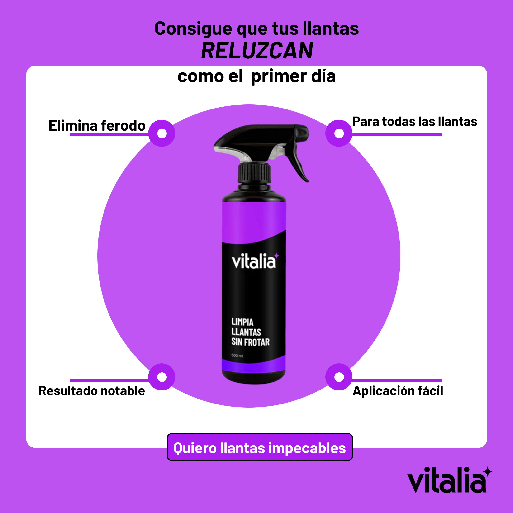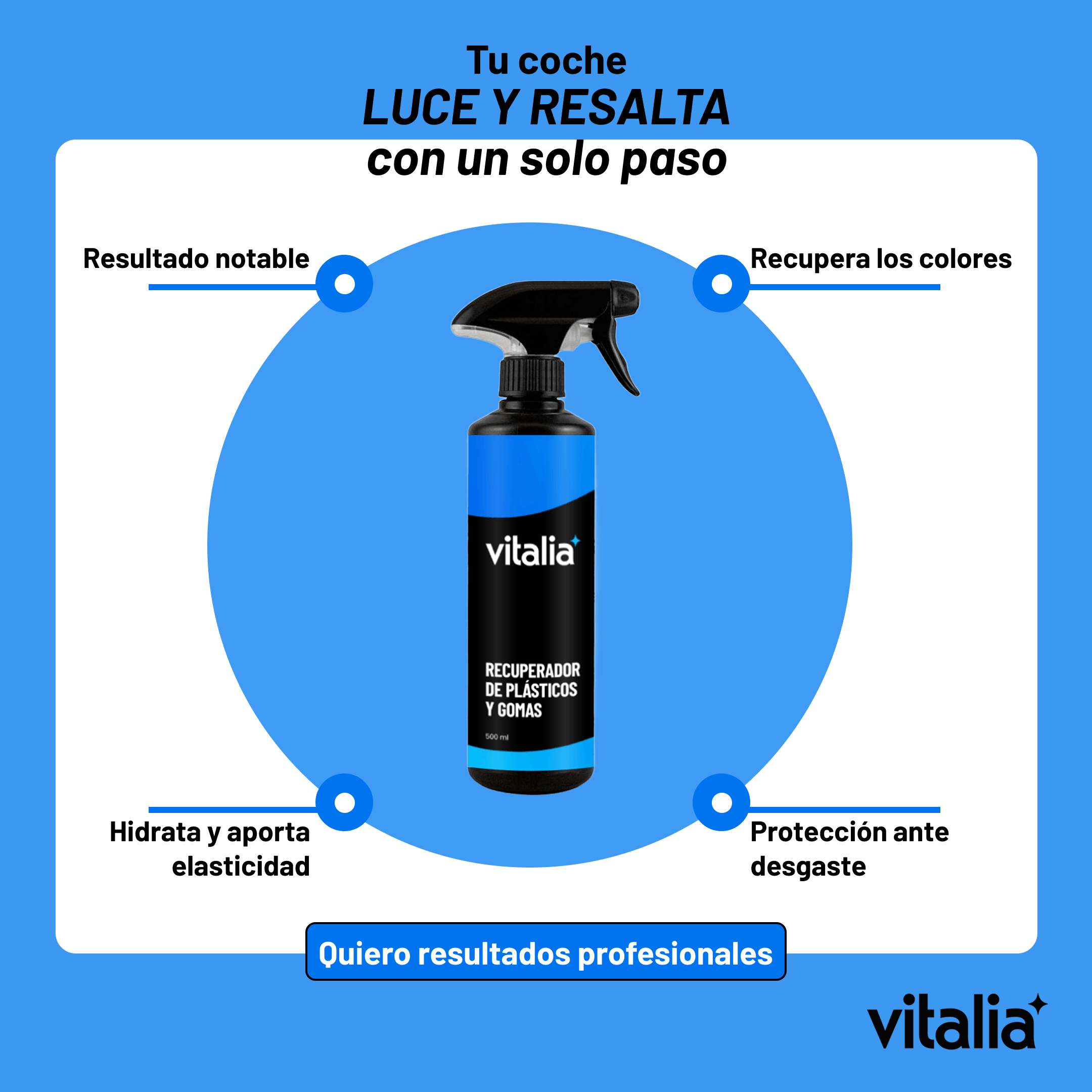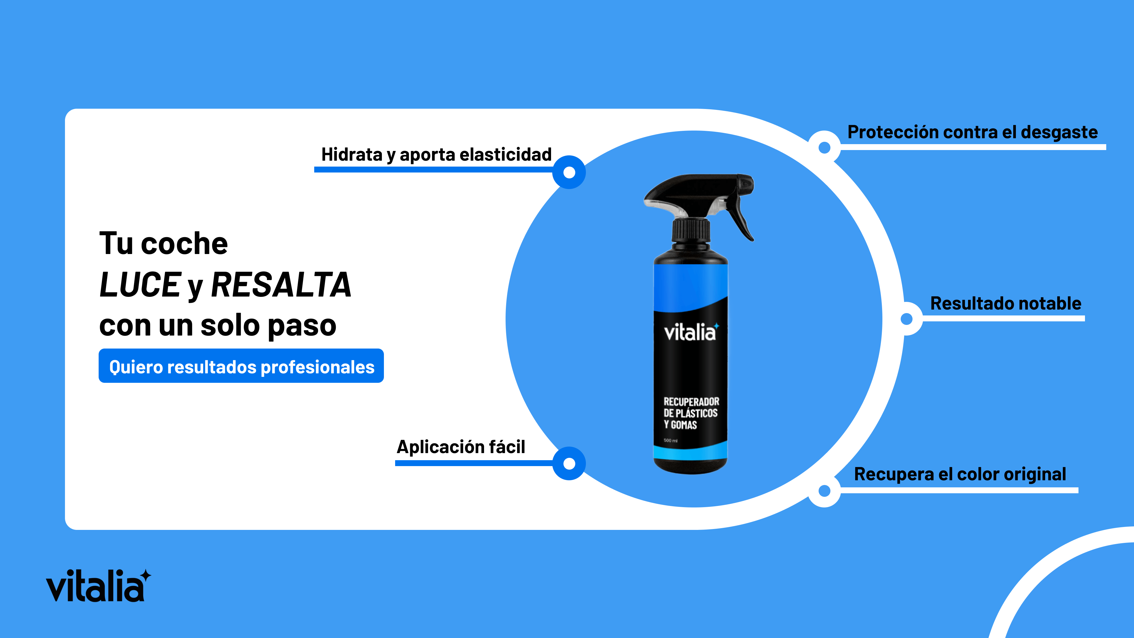 Simplicidad y claridad. Vitalia no busca que compres más, sino que compres mejor: pocos productos, bien explicados y con resultados reales. Eliminamos la confusión del “detailing técnico” para que cualquier persona pueda mantener su vehículo impecable con una rutina fácil y efectiva.