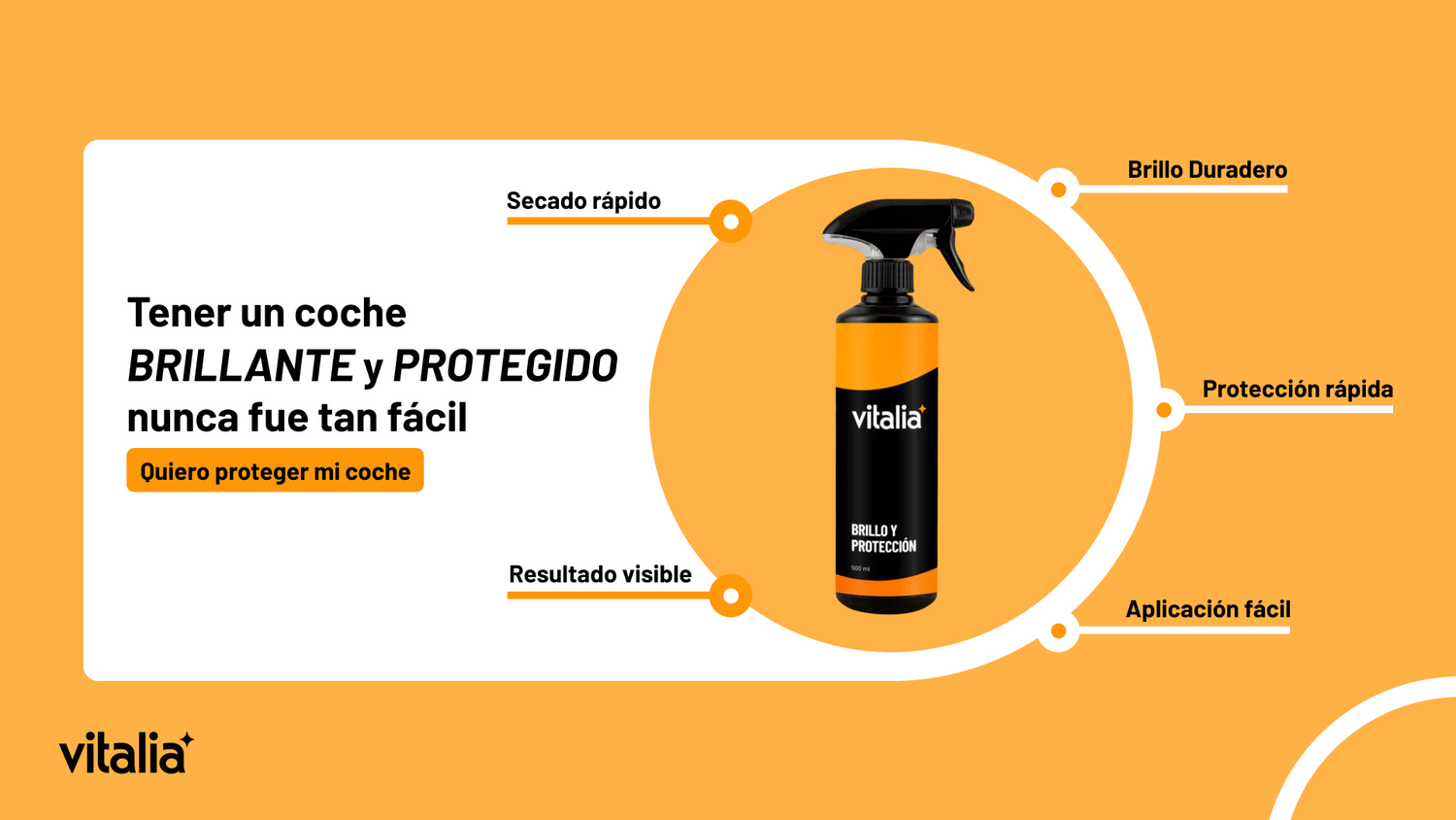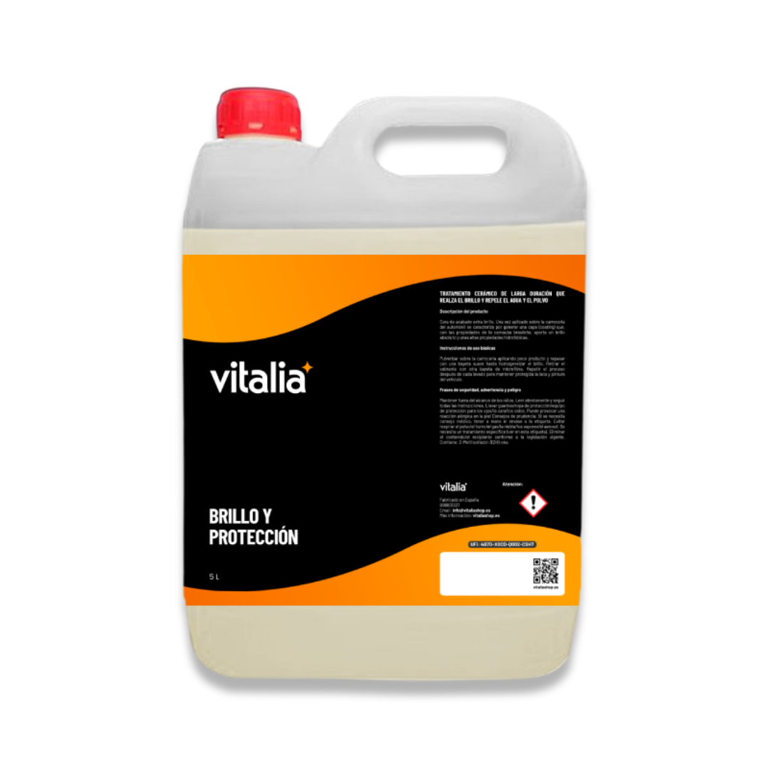 La Cera de Carnauba Líquida de Vitalia es la solución ideal para mantener tu coche con un brillo espectacular y una protección duradera. Su fórmula avanzada limpia, abrillanta y protege, ofreciendo un acabado hidrofóbico que repele el agua y la suciedad, y dejando una capa protectora contra los rayos solares, insectos y excrementos de pájaros.